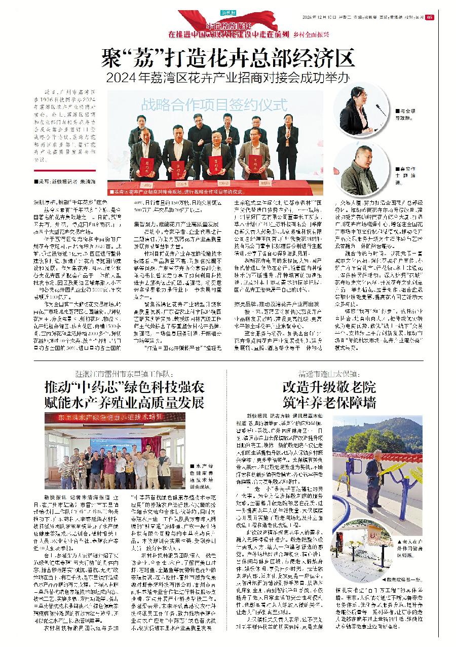 新快報訊 花地接花津,四時皆似春。12月6日,荔灣區在1906科技園舉辦2024年荔灣區花卉產業招商對接會。會上,荔灣區招商和農業部門與相關花卉協會及頭部企業簽訂11份戰略合作協議,荔灣與花都兩區農業部門簽訂花卉產業高質量發展合作協議。